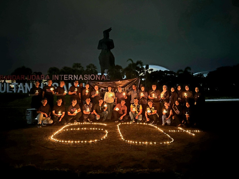 General Manager Bandara Internasional Sultan Hasanuddin, Taochid Purnomo Hadi mengatakan, dipadamkannya beberapa penerangan di area bandara, sebagai dukungan dan komitmen pengelola bandara dalam melestarikan lingkungan.