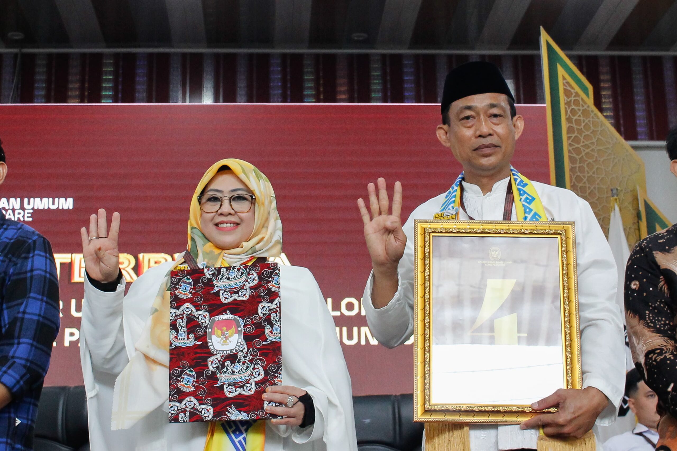 AKARBERITA.COM, Parepare – Komisi Pemilihan Umum (KPU) Kota Parepare menetapkan Erna Rasyid Taufan dan Rahmat Sjamsu Alam (Erat Bersalam) sebagai pasangan calon nomor urut 4 pada pemilihan Wali Kota dan Wakil Wali Kota Parepare tahun 2024.