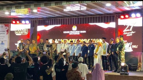 Kegiatan yang dihadiri calon wali kota dan wakil wali kota, perwakilan partai politik pengusul, tim kampanye, serta para pendukung ini ditandai dengan penandatanganan pernyataan komitmen yang berisi tiga poin utama.